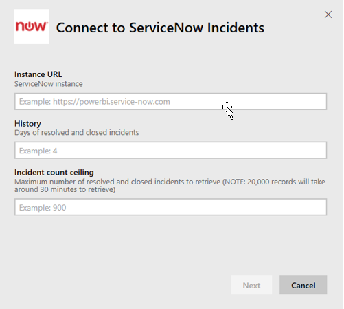 Connect to the Power BI content pack for ServiceNow Incidents.